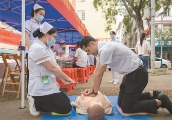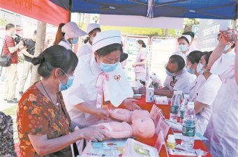 ③在护士节义诊活动中,专科护士为群众指导育儿知识。玉 石/摄