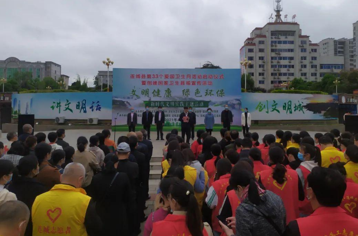 4月9日,由龙岩市委文明办、市卫健委、连城县委、县政府联合主办的第33个爱国卫生月活动启动仪式在连城县举行。中共龙岩市委文明办副主任傅兰,龙岩市卫健委一级调研员林国清,连城县领导张前茂、郑煌泰出席仪式,连城县直各有关单位参加活动。