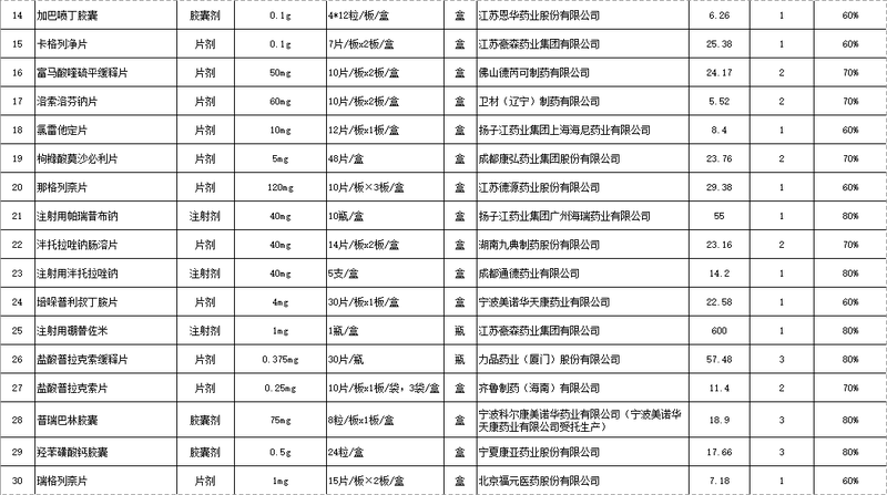 国家第四批药品集中采购共有45种药品158个产品中选,涉及高血压、糖尿病、消化道疾病、精神类疾病、恶性肿瘤等多种治疗领域,平均降价52%。一批常用药品、抗癌药品费用将明显降低。以胃溃疡治疗药物艾司奥美拉唑肠溶片(20mg/片)为例,集采后每片价格从9元下降到3元,整个疗程可节约费用约240元。抗癌药索拉非尼单片价格从95元下降到30元,按每天2片的服用量计算,每个月可为患者节约药费3900元。治疗多发性骨髓瘤的抗癌药硼替佐米注射剂单支价格从1500元降至600元,整个疗程可节省约3.6万元。