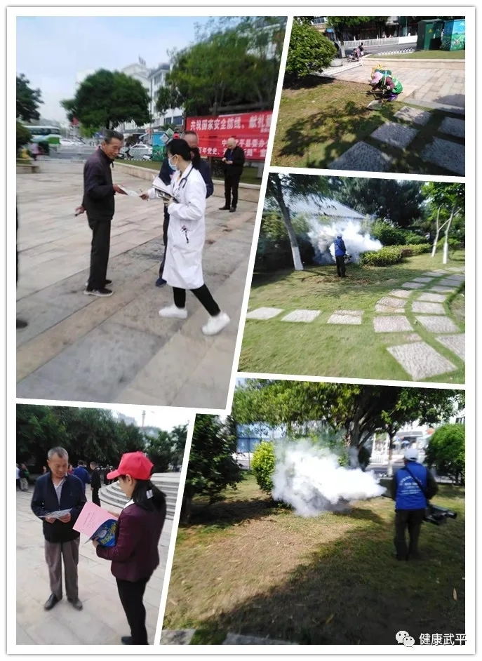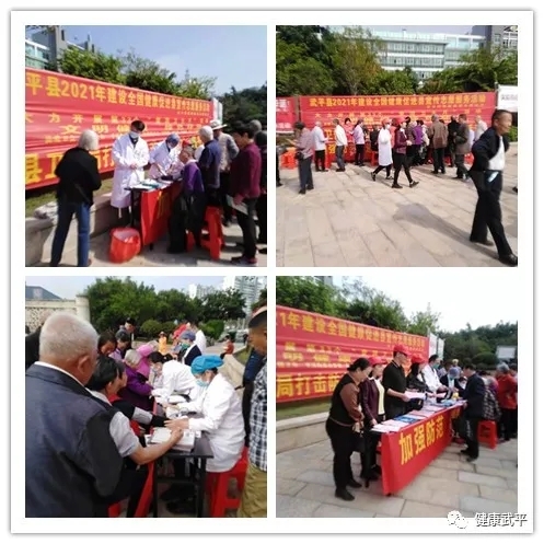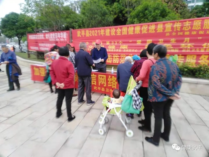 4月21日上午,武平县卫健局、爱卫办、疾控中心、平川街道办事处、县医院、中医院、妇幼院、城区社区卫生服务中心联合在城区梁野文化广场开展建设全国健康促进县暨第33个“爱国卫生月”宣传志愿服务活动。