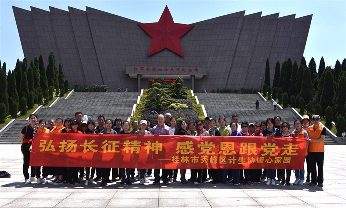 4月29日,桂林市秀峰区计生协开展“弘扬长征精神?感党恩跟党走”主题教育,组织辖区计生特殊家庭到全州红军长征湘江战役纪念园参观学习,重温党的光辉历史,缅怀革命先烈,接受革命传统教育。