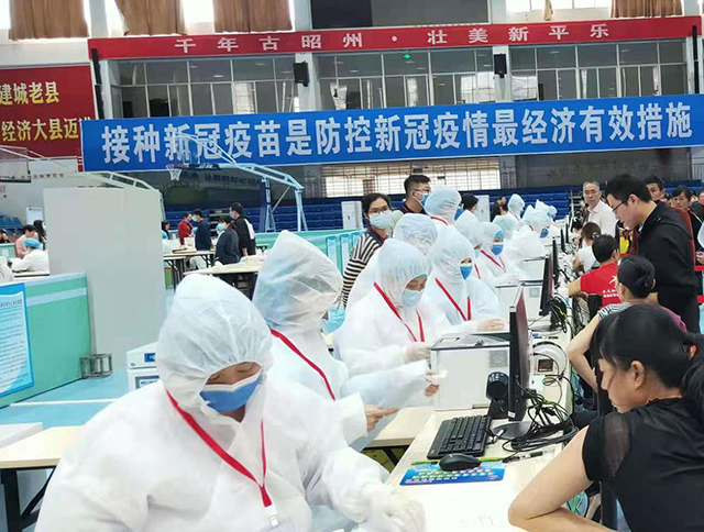 据悉,平乐县大型临时接种点设在平乐县体育馆,面积超过500平米,设有20个接种台,可随时启用10个,日均接种量超过2000人,卫健部门已精选108名储备人员,大型临时接种点可随时调用,各乡镇各片区正在组织摸底,公安等相关部门的志愿者等也在准备中,力争在6月底完成全县16万人员的新冠疫苗接种任务,以确保该县建立群体免疫屏障。(蒋福军)
