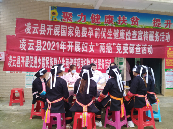 仪式结束后,由凌云县卫生健康局、县计划生育协会、县妇幼保健院、朝里卫生院等单位现场设立摊点,开展生殖健康知识宣传、义诊咨询服务、妇检康检及两癌筛查服务等活动。活动两天共为500余名育龄群众免费测血压、测血糖,指导用药治疗等常规检查,为60余名育龄群开展两癌筛查服务。医务人员现场为群众讲解生殖健康和自我保健等有关知识,并向群众发放各类宣传资料6000余份,发放宣传品1200余份。
