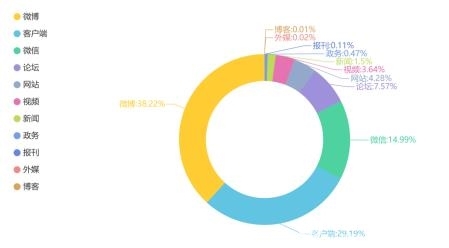 在信息传播渠道上,“五一”期间“消费维权”类信息传播渠道主要有微博、客户端、微信、论坛、网站、视频等。其中,微博信息量最高,占比38.22%;其次是客户端,信息量占比29.19%;第三是微信,信息量占比14.99%。