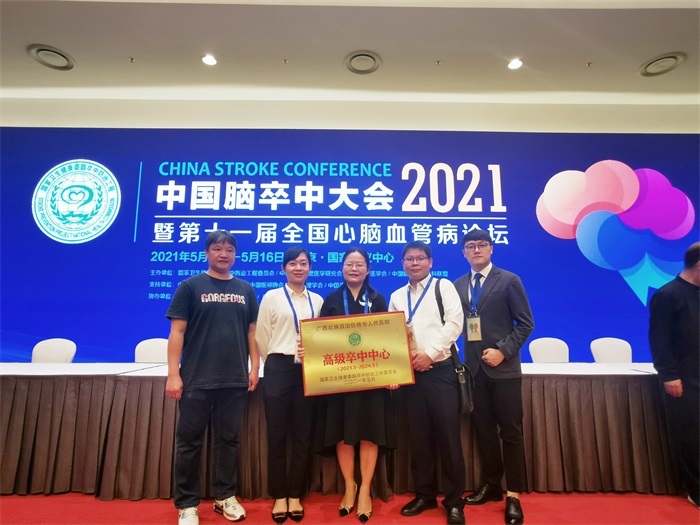 2021年5月14-16日,“2021年中国脑卒中大会暨第十一届全国心脑血管病论坛”在北京召开,广西壮族自治区桂东人民医院等96家单位在会上被授予2021年国家“高级卒中中心”。医院党委书记蒋柳结带队出席大会并接受牌匾。