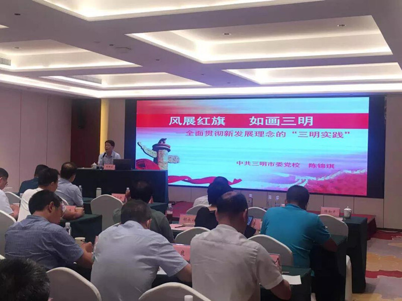 三明市委党校科社党建教研室主任、副教授陈锦琪系统阐释了“三明实践”的背景、内涵和意义,作了《风展红旗,如画三明--全面贯彻新发展理念的“三明实践”》的授课。